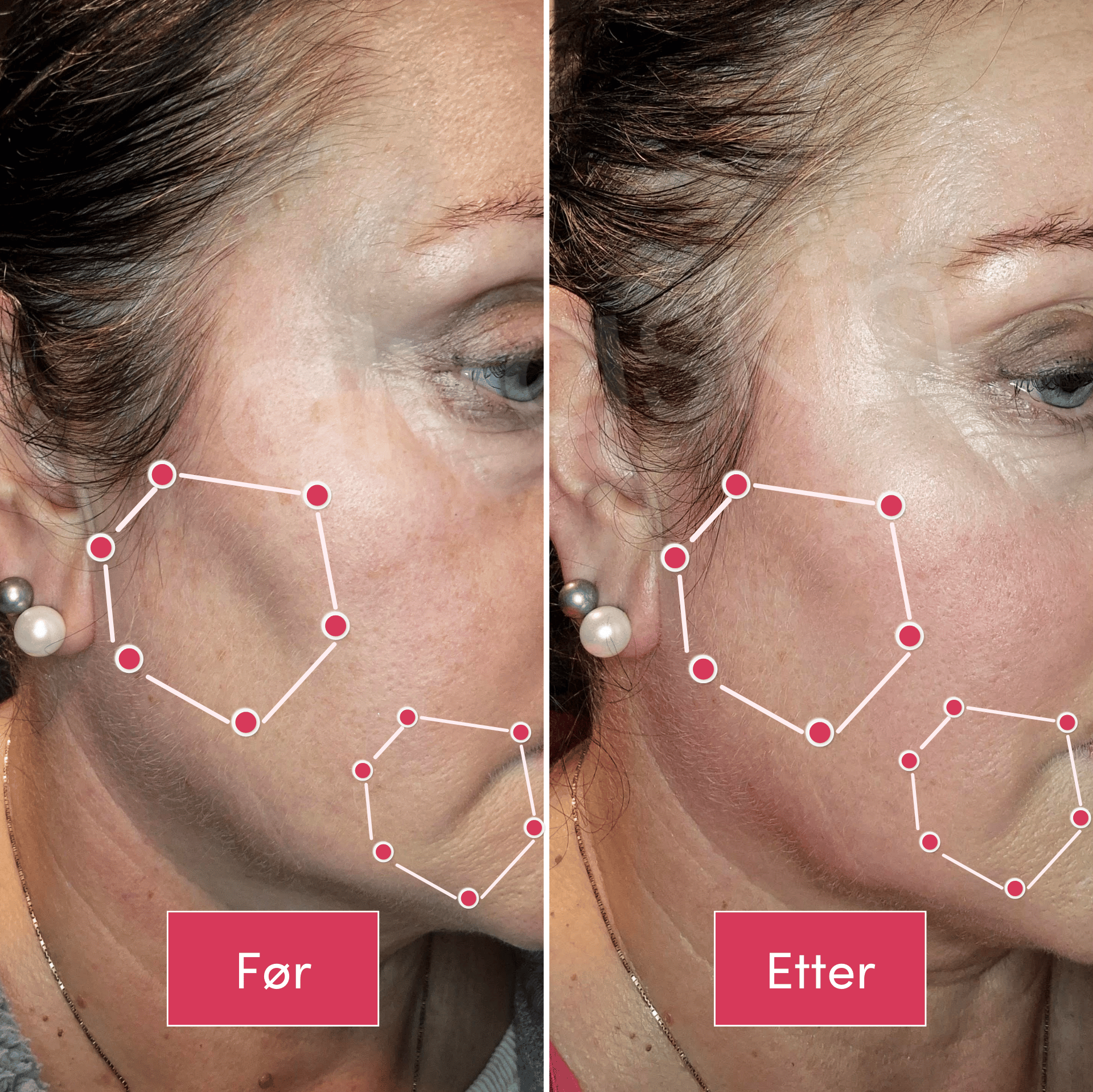 Rapporterte at kinn og kjevelinje ble mer oppstrammet og hang mindre.
